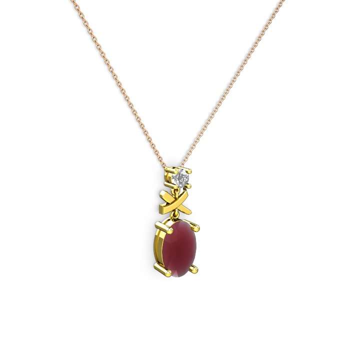 Kök yakut ve beyaz zirkon 14 ayar altın kolye (40 cm rose altın rolo zincir)