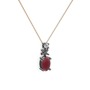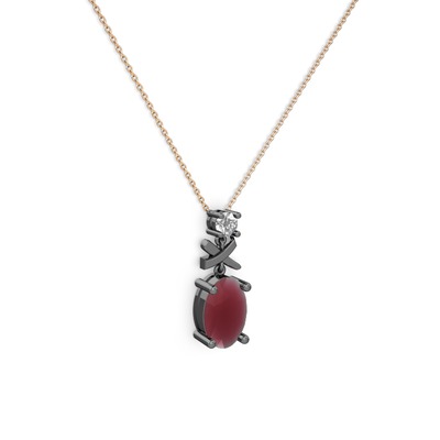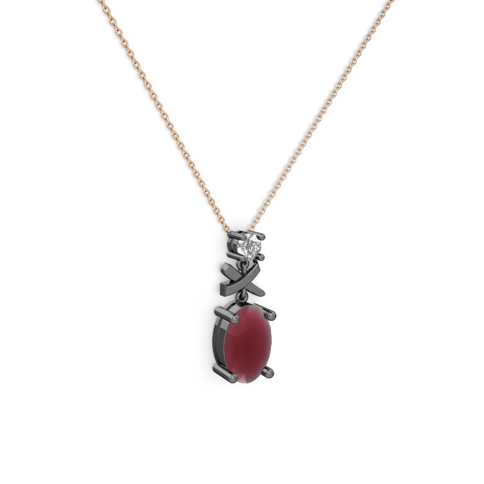 Kök yakut ve beyaz zirkon 925 ayar siyah rodyum kaplama gümüş kolye (40 cm rose altın rolo zincir)