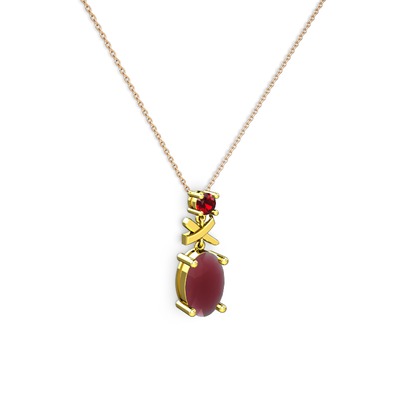 Kök yakut ve garnet 8 ayar altın kolye (40 cm rose altın rolo zincir)