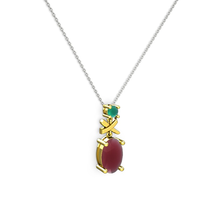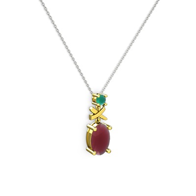 Kök yakut ve kök zümrüt 925 ayar altın kaplama gümüş kolye (40 cm beyaz altın rolo zincir)