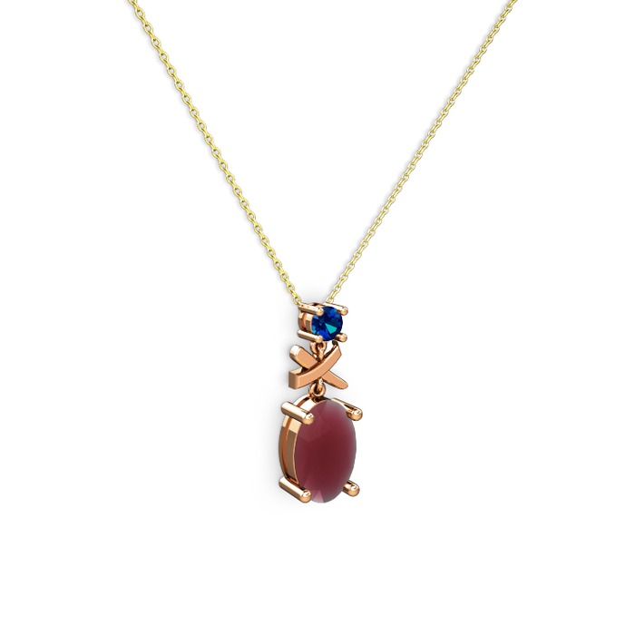 Kök yakut ve lab safir 18 ayar rose altın kolye (40 cm gümüş rolo zincir)