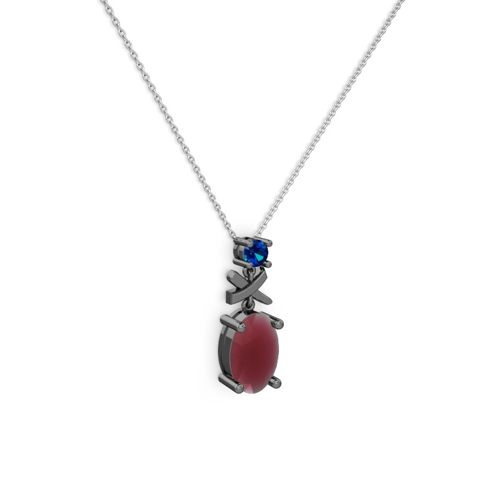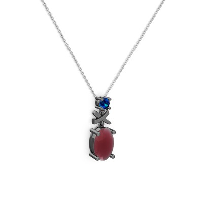 Kök yakut ve lab safir 925 ayar siyah rodyum kaplama gümüş kolye (40 cm beyaz altın rolo zincir)