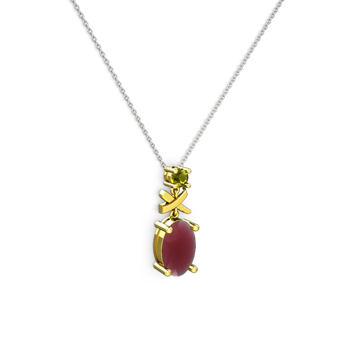 Kök yakut ve peridot 14 ayar altın kolye (40 cm gümüş rolo zincir)