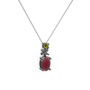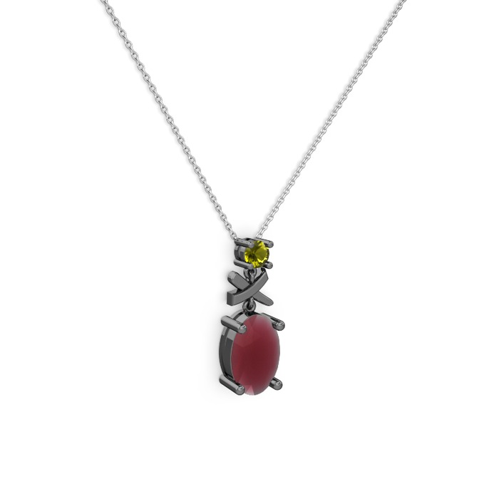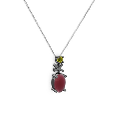 Kök yakut ve peridot 925 ayar siyah rodyum kaplama gümüş kolye (40 cm beyaz altın rolo zincir)