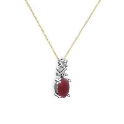 Kök yakut ve pırlanta 14 ayar beyaz altın kolye (0.24 karat, 40 cm gümüş rolo zincir)