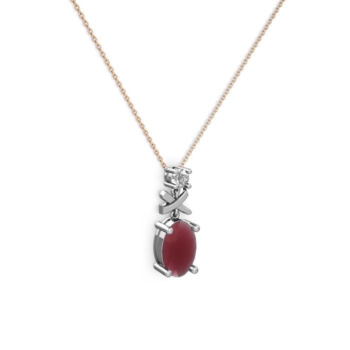 Kök yakut ve pırlanta 925 ayar gümüş kolye (0.24 karat, 40 cm rose altın rolo zincir)