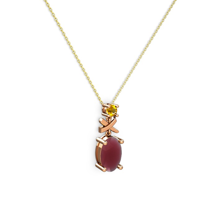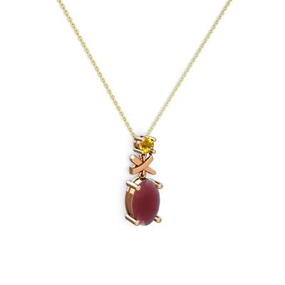 Kök yakut ve sitrin 8 ayar rose altın kolye (40 cm altın rolo zincir)
