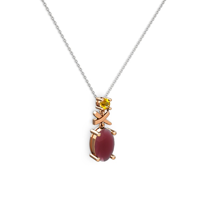 Kök yakut ve sitrin 8 ayar rose altın kolye (40 cm beyaz altın rolo zincir)