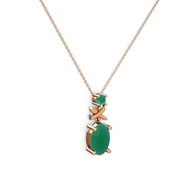 Kök zümrüt 8 ayar rose altın kolye (40 cm rose altın rolo zincir)