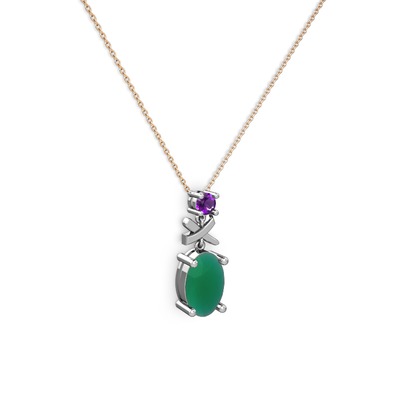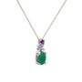 Kök zümrüt ve ametist 18 ayar beyaz altın kolye (40 cm gümüş rolo zincir)