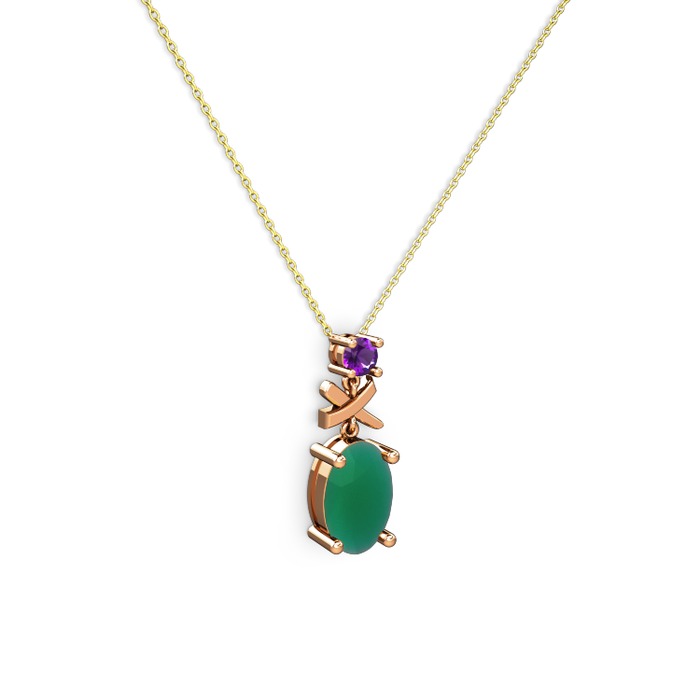 Kök zümrüt ve ametist 18 ayar rose altın kolye (40 cm gümüş rolo zincir)