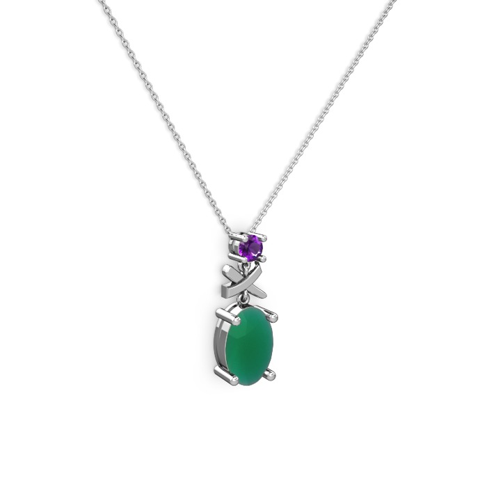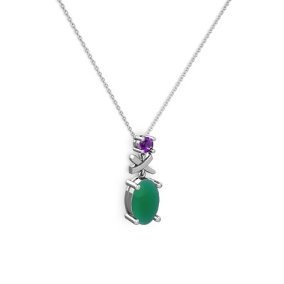 Kök zümrüt ve ametist 925 ayar gümüş kolye (40 cm gümüş rolo zincir)