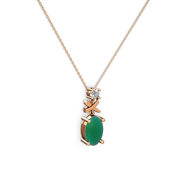 Kök zümrüt ve beyaz zirkon 18 ayar rose altın kolye (40 cm rose altın rolo zincir)