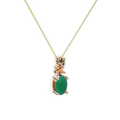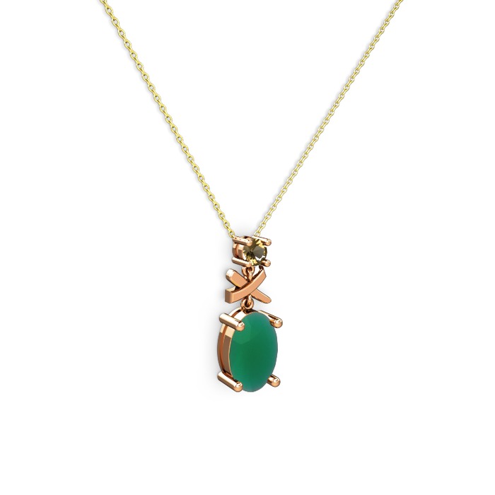 Kök zümrüt ve dumanlı kuvars 925 ayar rose altın kaplama gümüş kolye (40 cm gümüş rolo zincir)