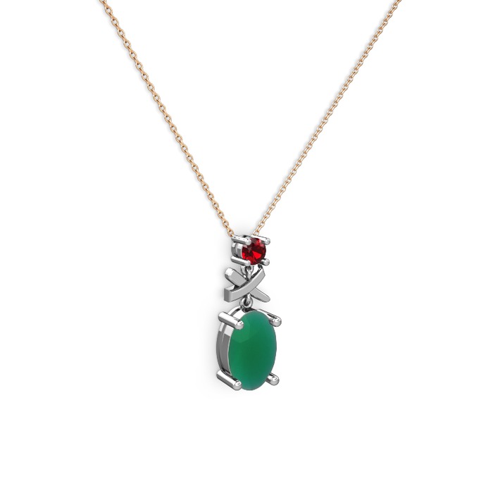 Kök zümrüt ve garnet 14 ayar beyaz altın kolye (40 cm gümüş rolo zincir)