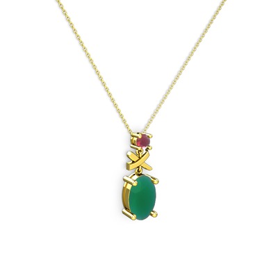 Kök zümrüt ve kök yakut 18 ayar altın kolye (40 cm altın rolo zincir)