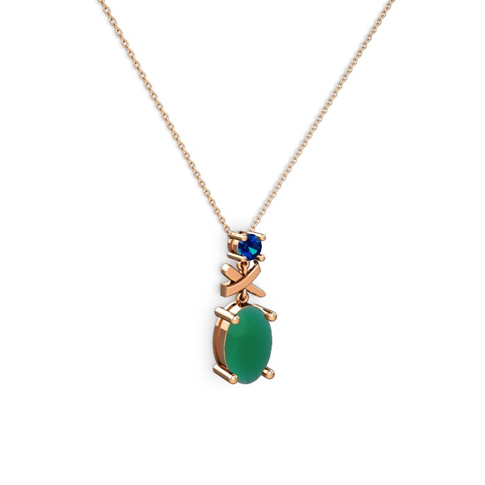 Kök zümrüt ve lab safir 14 ayar rose altın kolye (40 cm rose altın rolo zincir)