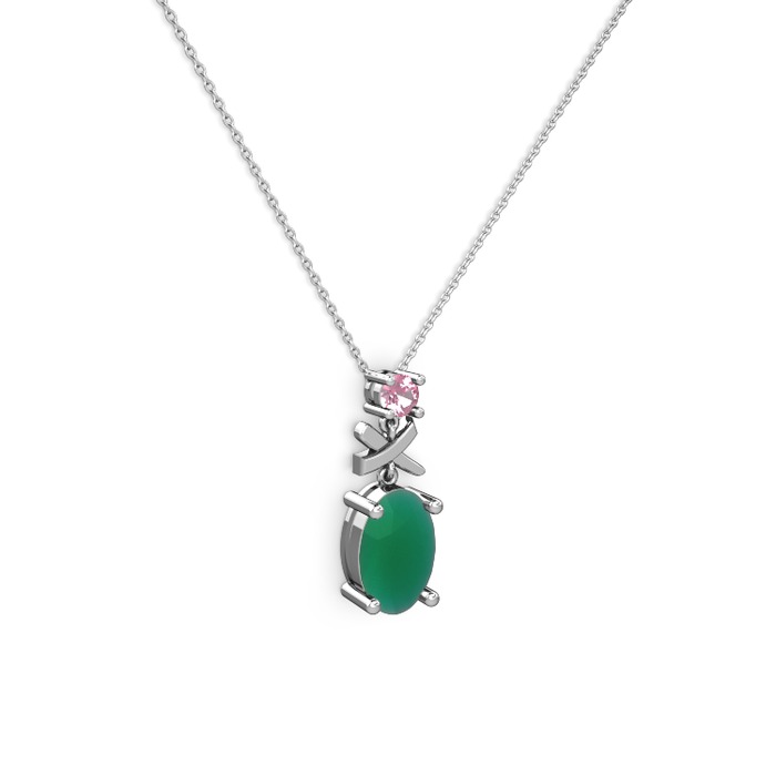 Kök zümrüt ve pembe kuvars 8 ayar beyaz altın kolye (40 cm beyaz altın rolo zincir)
