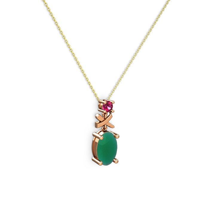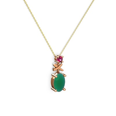 Kök zümrüt ve rodolit garnet 18 ayar rose altın kolye (40 cm altın rolo zincir)