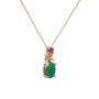 Kök zümrüt ve rodolit garnet 8 ayar rose altın kolye (40 cm gümüş rolo zincir)