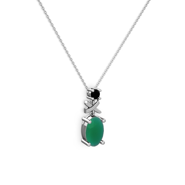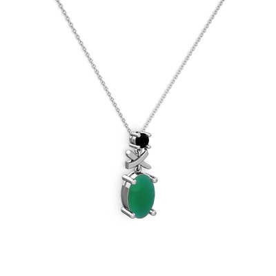 Kök zümrüt ve siyah zirkon 14 ayar beyaz altın kolye (40 cm beyaz altın rolo zincir)