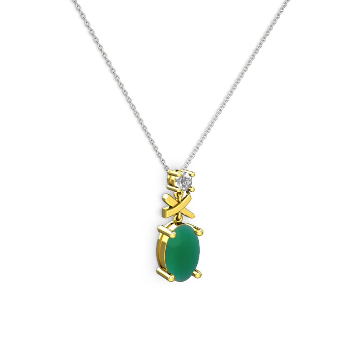 Kök zümrüt ve swarovski 18 ayar altın kolye (40 cm beyaz altın rolo zincir)