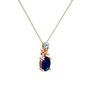 Lab safir ve akuamarin 18 ayar rose altın kolye (40 cm rose altın rolo zincir)