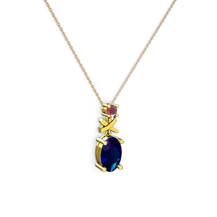 Lab safir ve kök yakut 18 ayar altın kolye (40 cm rose altın rolo zincir)