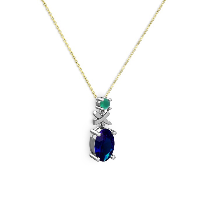 Lab safir ve kök zümrüt 14 ayar beyaz altın kolye (40 cm gümüş rolo zincir)