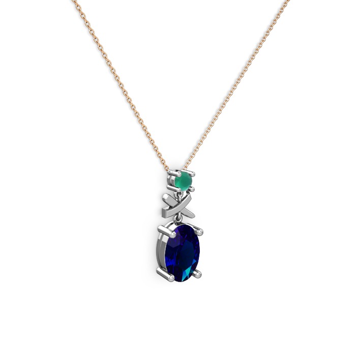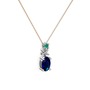 Lab safir ve kök zümrüt 925 ayar gümüş kolye (40 cm rose altın rolo zincir)