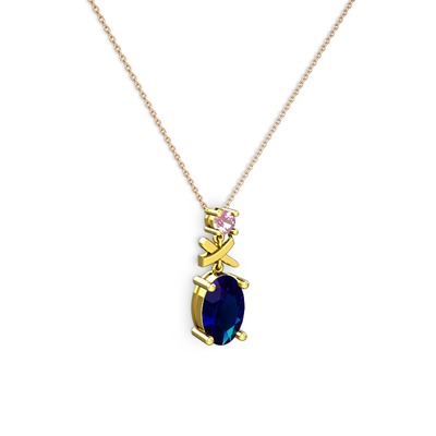 Lab safir ve pembe kuvars 925 ayar altın kaplama gümüş kolye (40 cm rose altın rolo zincir)