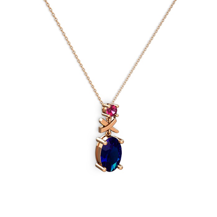 Lab safir ve rodolit garnet 14 ayar rose altın kolye (40 cm rose altın rolo zincir)