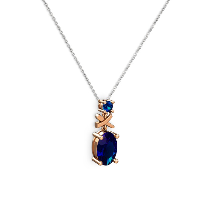 Lab safir 925 ayar rose altın kaplama gümüş kolye (40 cm beyaz altın rolo zincir)