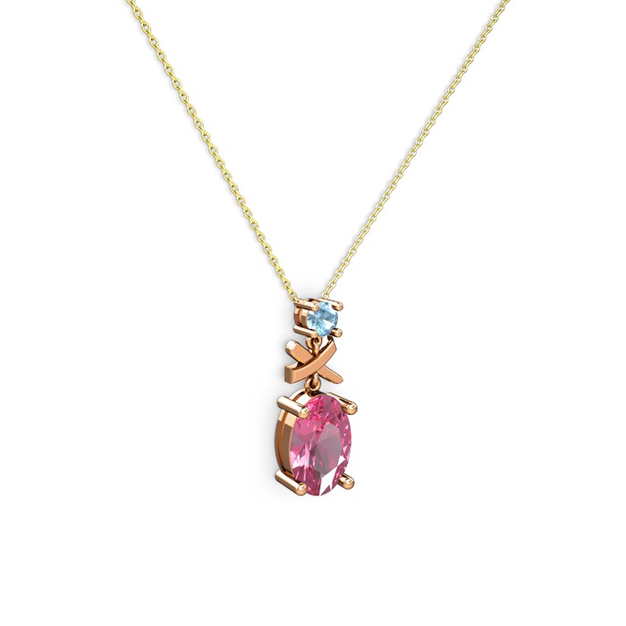 Pembe kuvars ve akuamarin 8 ayar rose altın kolye (40 cm altın rolo zincir)