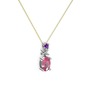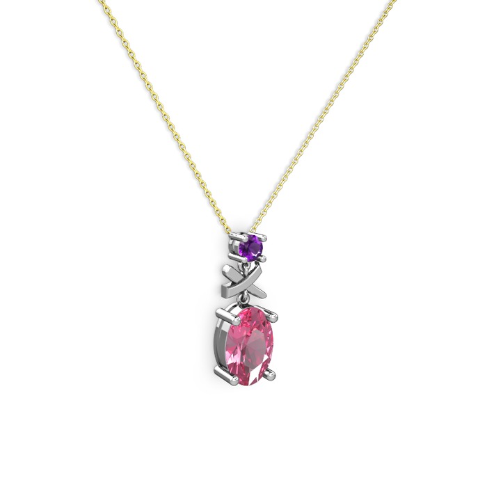 Pembe kuvars ve ametist 14 ayar beyaz altın kolye (40 cm gümüş rolo zincir)
