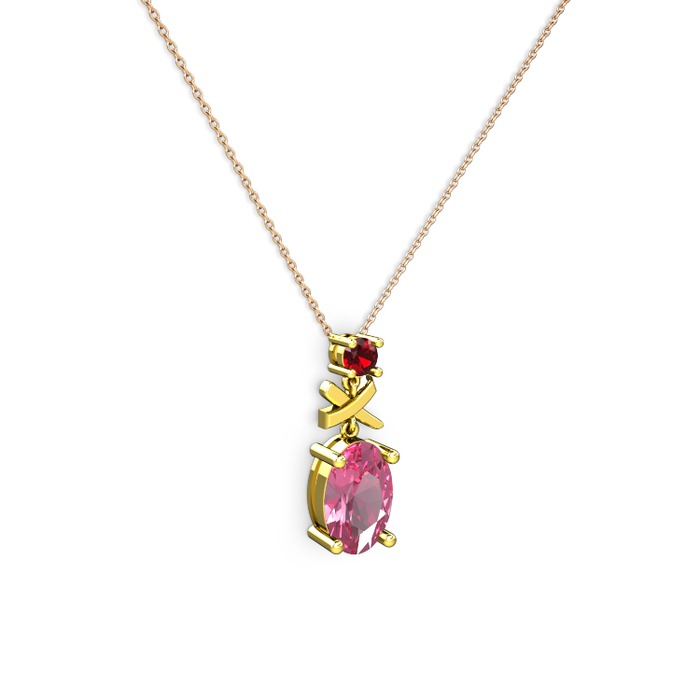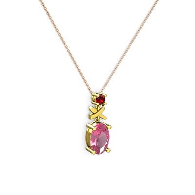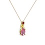 Pembe kuvars ve garnet 8 ayar altın kolye (40 cm rose altın rolo zincir)