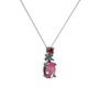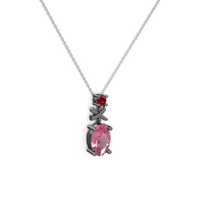 Pembe kuvars ve garnet 925 ayar siyah rodyum kaplama gümüş kolye (40 cm beyaz altın rolo zincir)