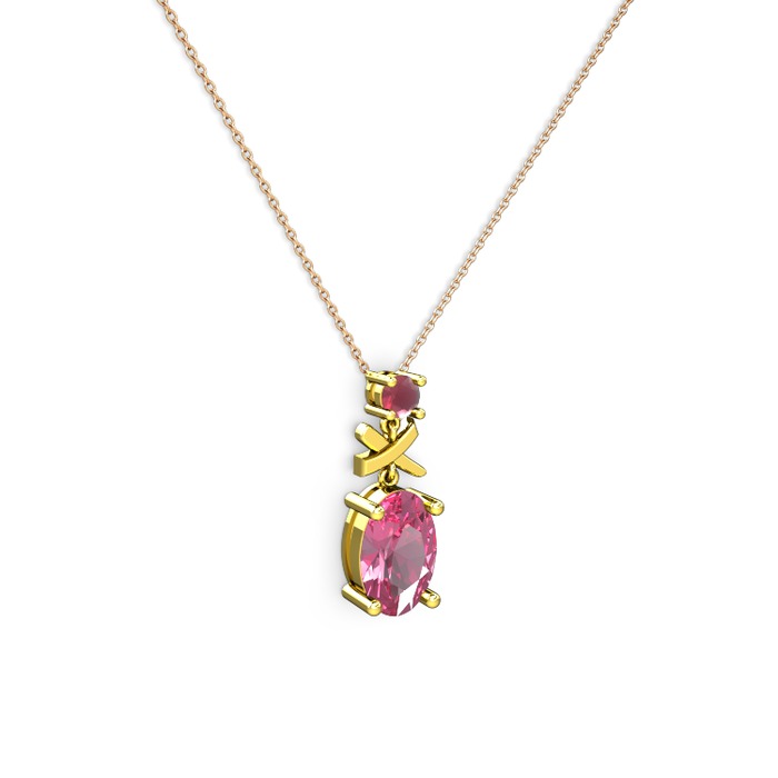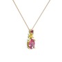 Pembe kuvars ve kök yakut 8 ayar altın kolye (40 cm rose altın rolo zincir)
