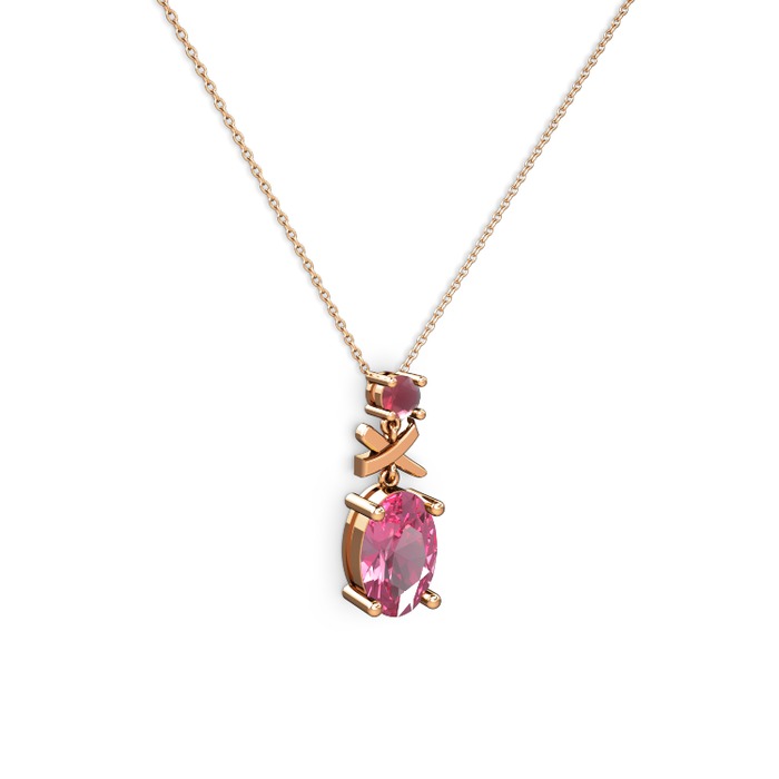 Pembe kuvars ve kök yakut 8 ayar rose altın kolye (40 cm rose altın rolo zincir)