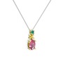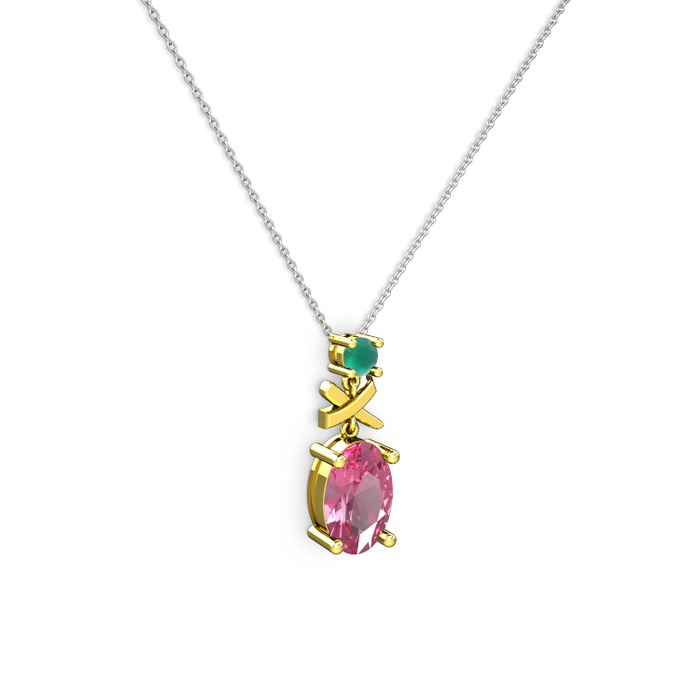 Pembe kuvars ve kök zümrüt 925 ayar altın kaplama gümüş kolye (40 cm beyaz altın rolo zincir)