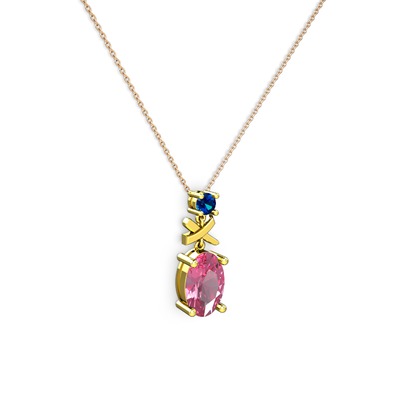 Pembe kuvars ve lab safir 14 ayar altın kolye (40 cm rose altın rolo zincir)