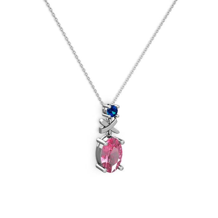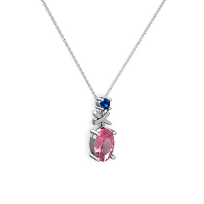 Pembe kuvars ve lab safir 14 ayar beyaz altın kolye (40 cm beyaz altın rolo zincir)