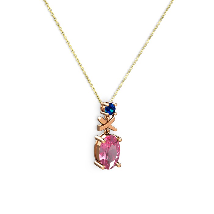 Pembe kuvars ve lab safir 18 ayar rose altın kolye (40 cm altın rolo zincir)
