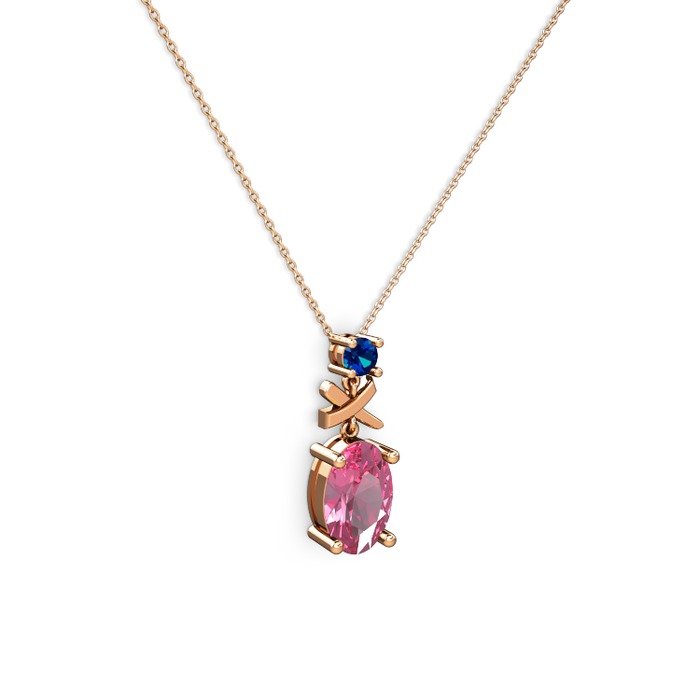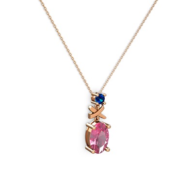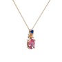 Pembe kuvars ve lab safir 18 ayar rose altın kolye (40 cm rose altın rolo zincir)