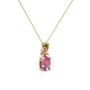 Pembe kuvars ve peridot 14 ayar rose altın kolye (40 cm gümüş rolo zincir)