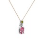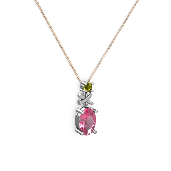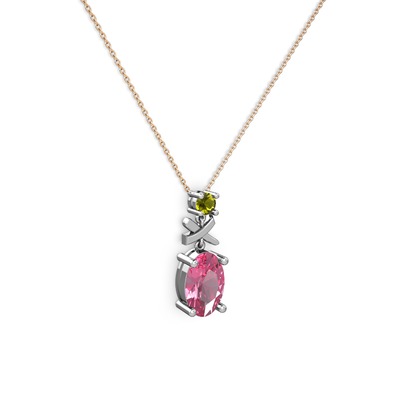 Pembe kuvars ve peridot 8 ayar beyaz altın kolye (40 cm gümüş rolo zincir)