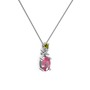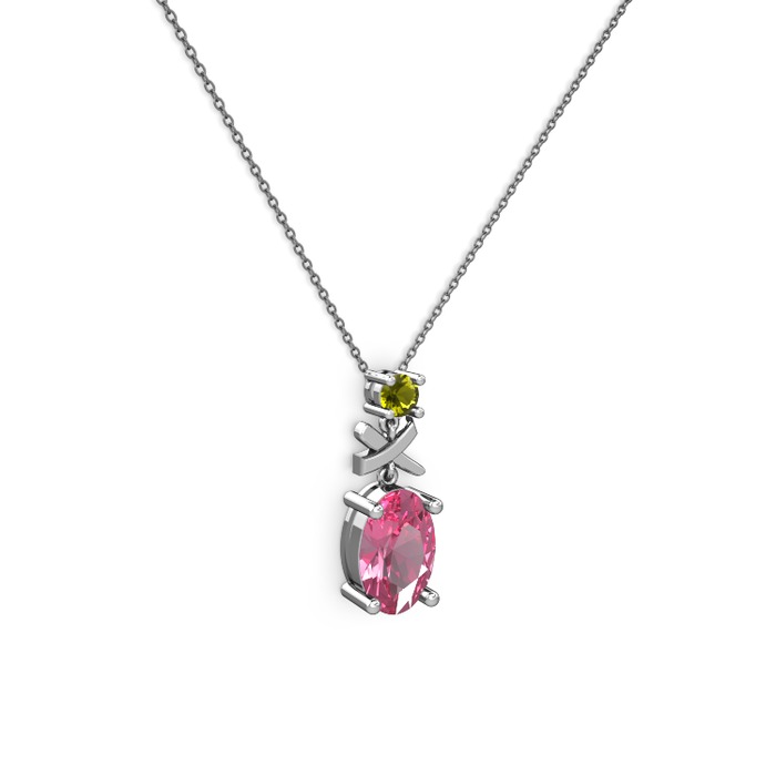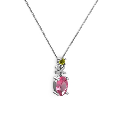 Pembe kuvars ve peridot 8 ayar beyaz altın kolye (40 cm gümüş rolo zincir)