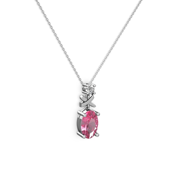 Pembe kuvars ve pırlanta 925 ayar gümüş kolye (0.24 karat, 40 cm beyaz altın rolo zincir)