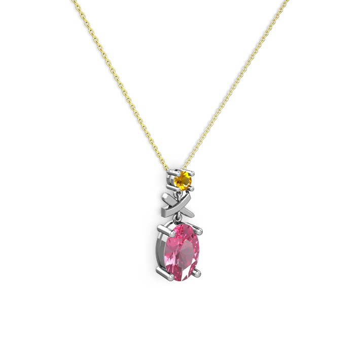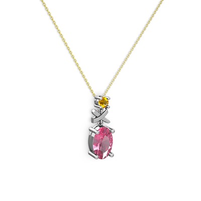 Pembe kuvars ve sitrin 8 ayar beyaz altın kolye (40 cm altın rolo zincir)