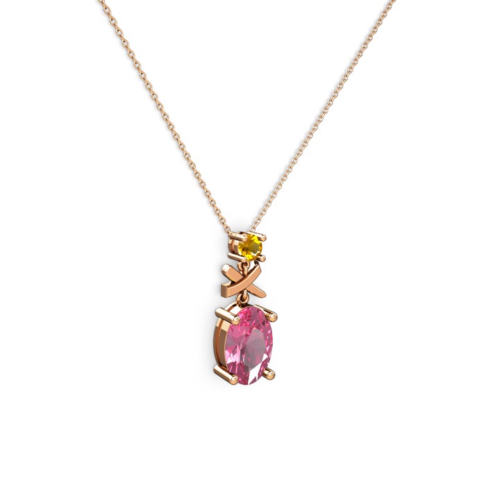 Pembe kuvars ve sitrin 925 ayar rose altın kaplama gümüş kolye (40 cm gümüş rolo zincir)